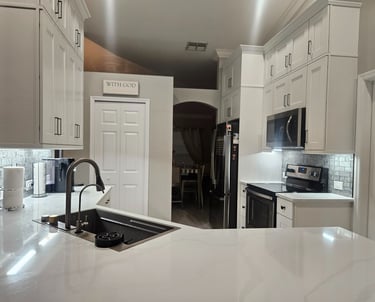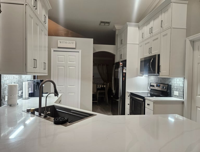 Tailored kitchen designs with quality cabinets and tile backsplashes.